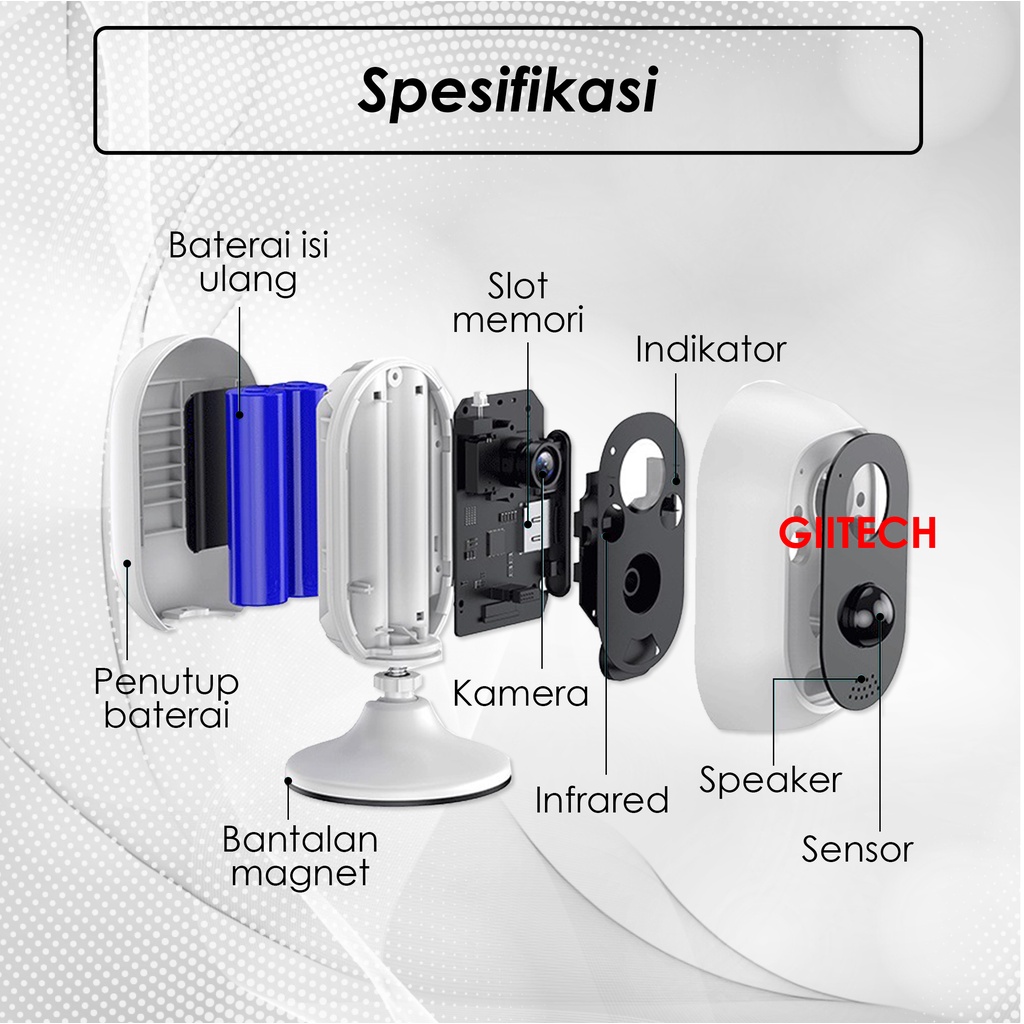 Spesifikasi CCTV OUTDOOR BATTERY RECHARGEABLE 5MP 1080P PIR MOTION SENSOR INFRARED IP CAMERA TANPA KABEL WATERPROOF FREE STICKER - GIITECH