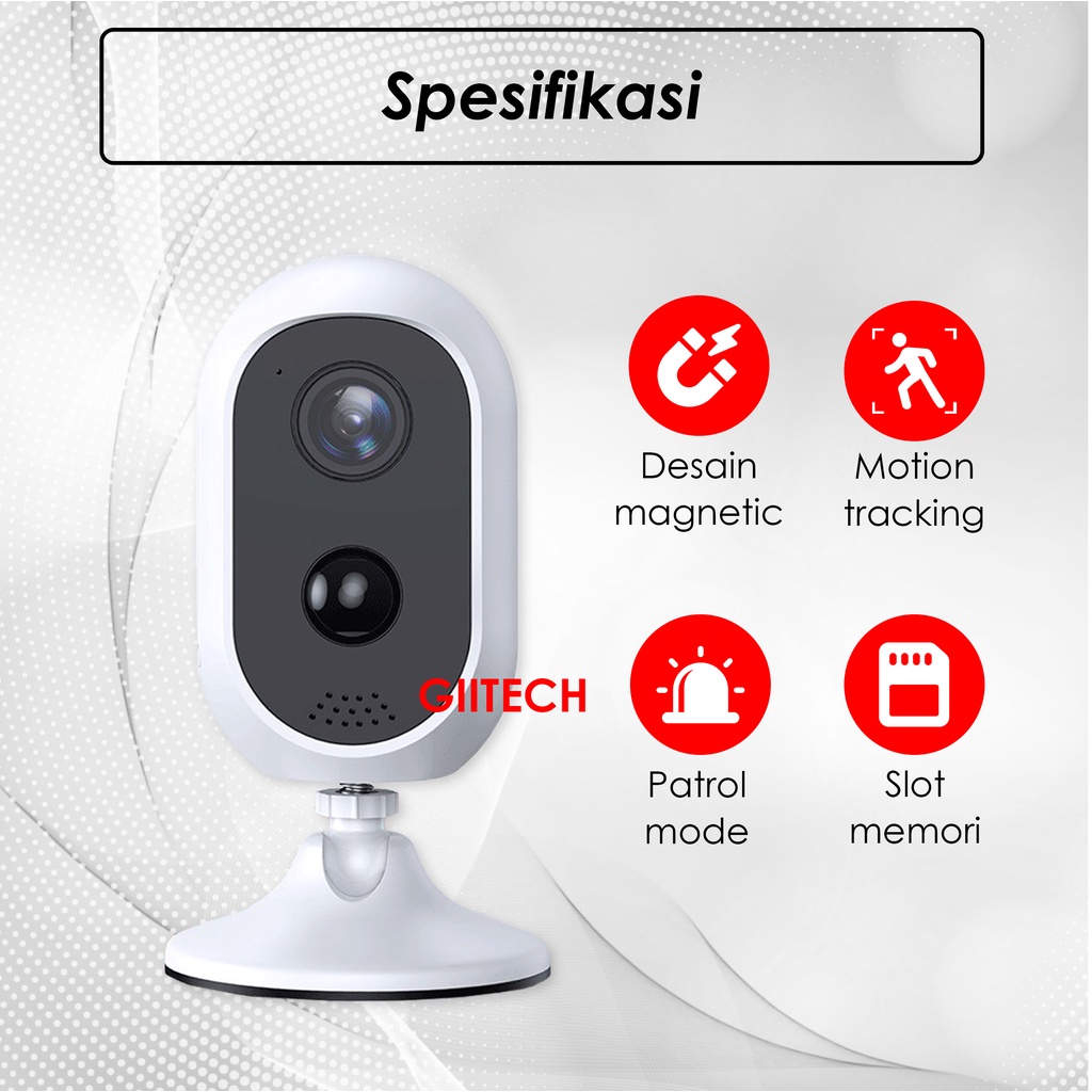 CCTV OUTDOOR BATTERY RECHARGEABLE 5MP 1080P PIR MOTION SENSOR INFRARED IP CAMERA TANPA KABEL WATERPROOF FREE STICKER - GIITECH