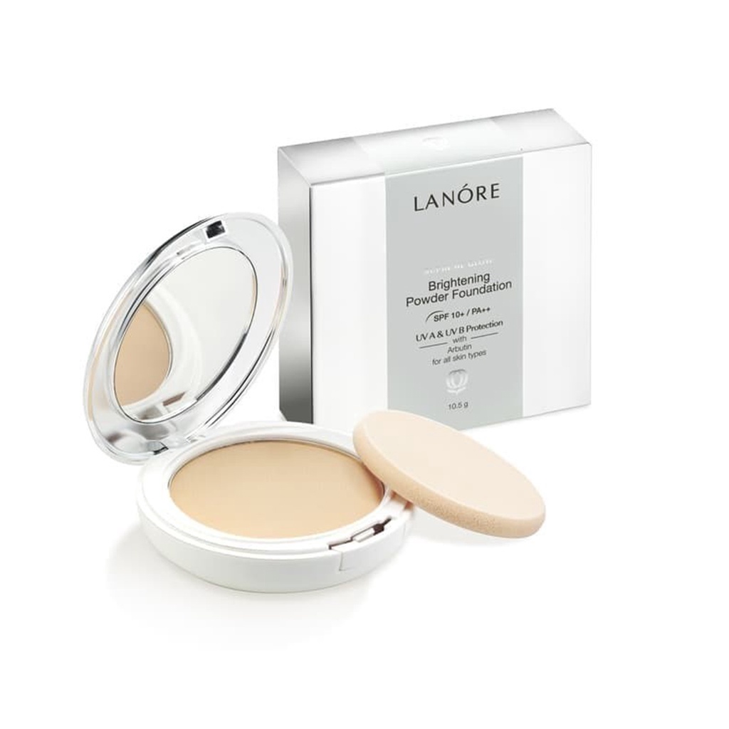 Lanore Brightening Powder Foundation SPF 10+ PA++ sangat cocok untuk wanita Asia yang aktif dan dinamis. Alas bedak dengan kandungan Arbutin yang membantu mencerahkan dan menyamarkan noda hitam pada kulit wajah. Kandungan UVA dan UVB filter melindungi kulit wajah dari pengaruh buruk paparan sinar matahari.
