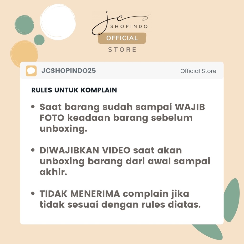🎁 Tambahkan 1x ⚪ Extra Bubble Wrap di etalase Jcshopindo25 ke cart/keranjang belanja Sista untuk mengurangi kerusakan yang timbul akibat pengiriman kurir. ⚠️ Bila tidak menambahkan Extra bubble wrap maaf no komplain ya Sis 🙏
