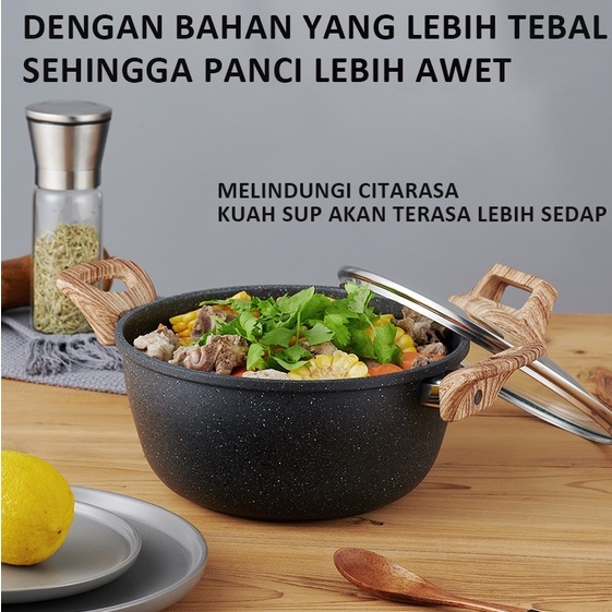 Lapisan marble pada bagian luar sehingga aman untuk kesehatan karena tidak mengandung PFOA yang membahayakan tubuh manusia.
