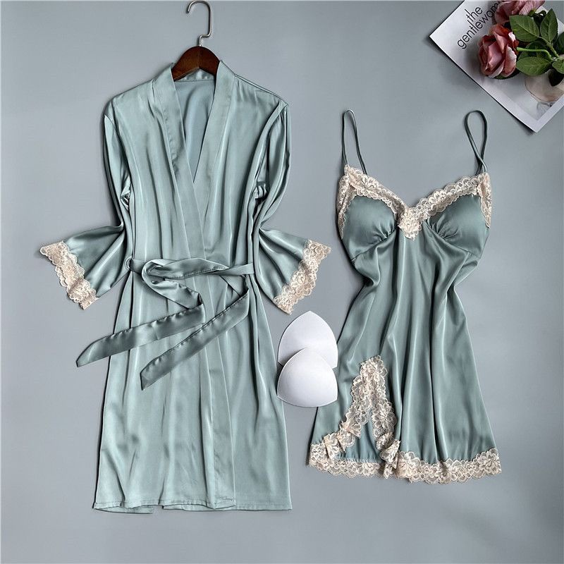 Buruan Beli CB440 baju kimono tidur wanita dress set 2in1 premium bahan satin lingerie lingeri lingery sexy