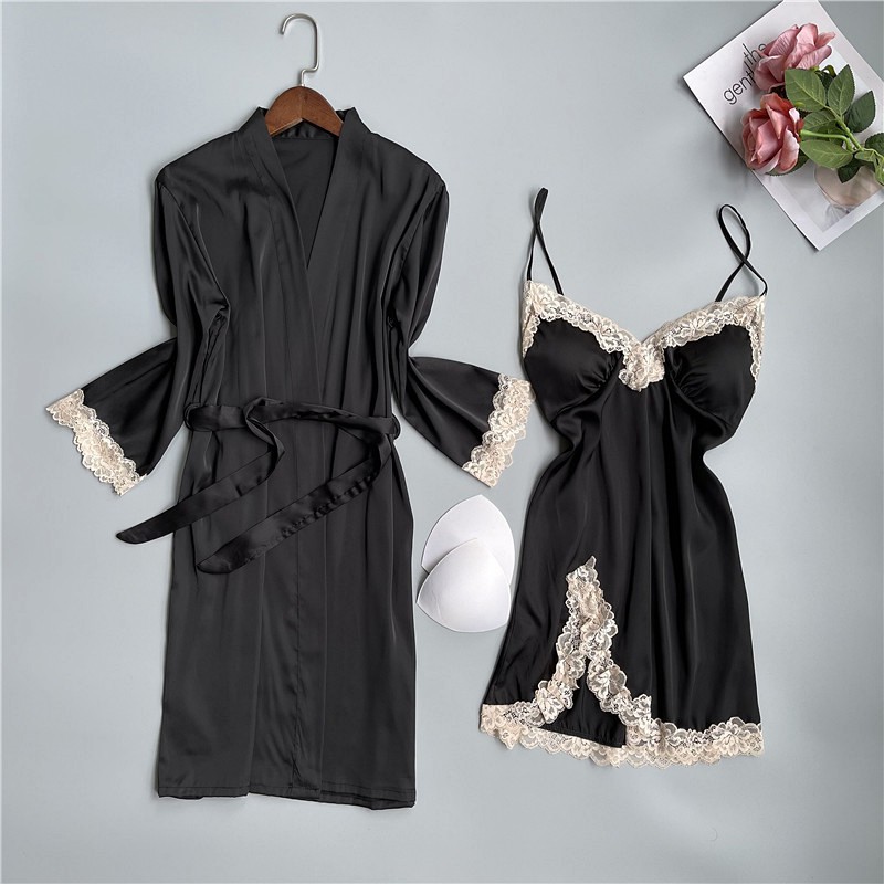 Cek dan Beli Lingerie Lingery MAHAL bahan PREMIUM Sutera Baju Tidur Piyama Sexy Set ( Bonus Pad / Bantalan Bra )