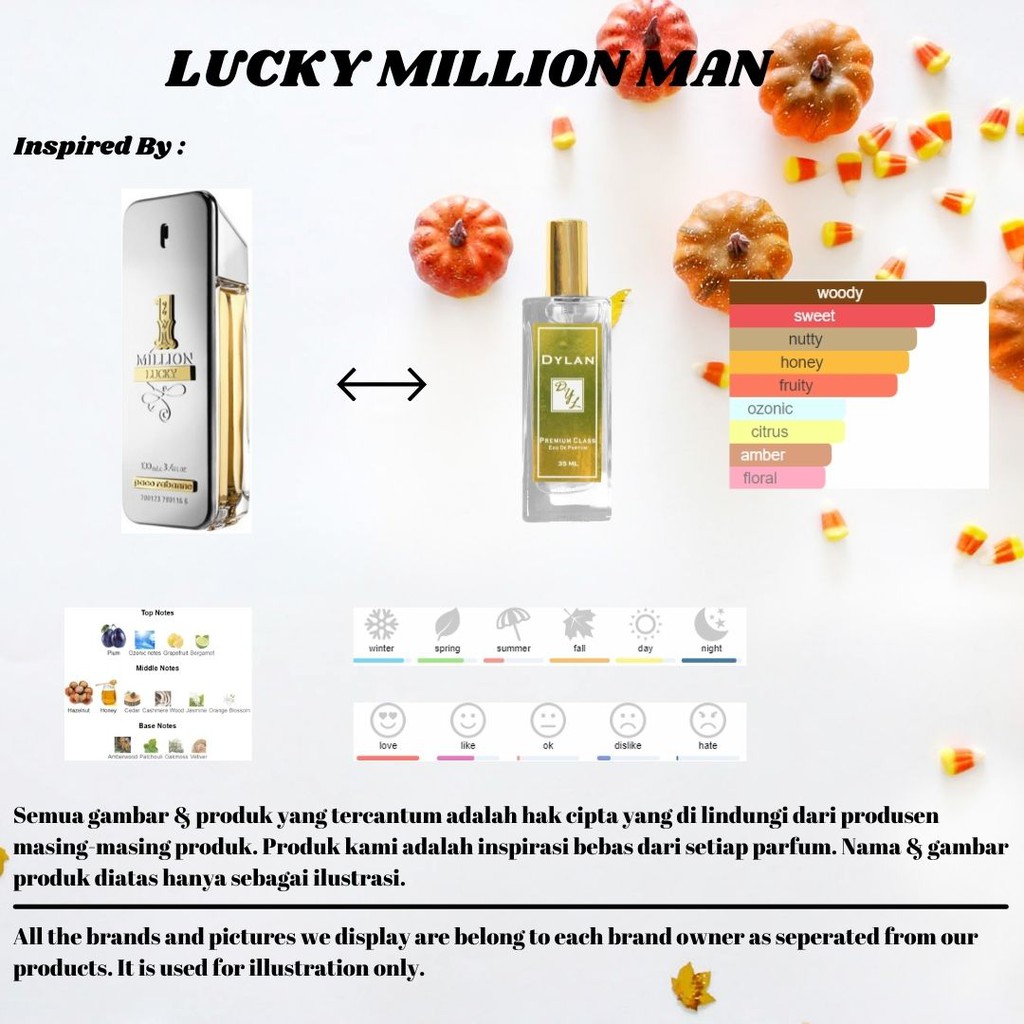- Produk ini tidak sedang Flash Sale, tidak semua Seller suka Flash Sale, saya rasa ini bukan kekurangan, Jika Anda anggap Harga Rp. 129.000,00 itu murah untuk LUCKY MILLION MAN - DYLANRICH PARFUM HIGH QUALITY - Inspired - BEST SELLER - Parfum Wanita ya ambil saja