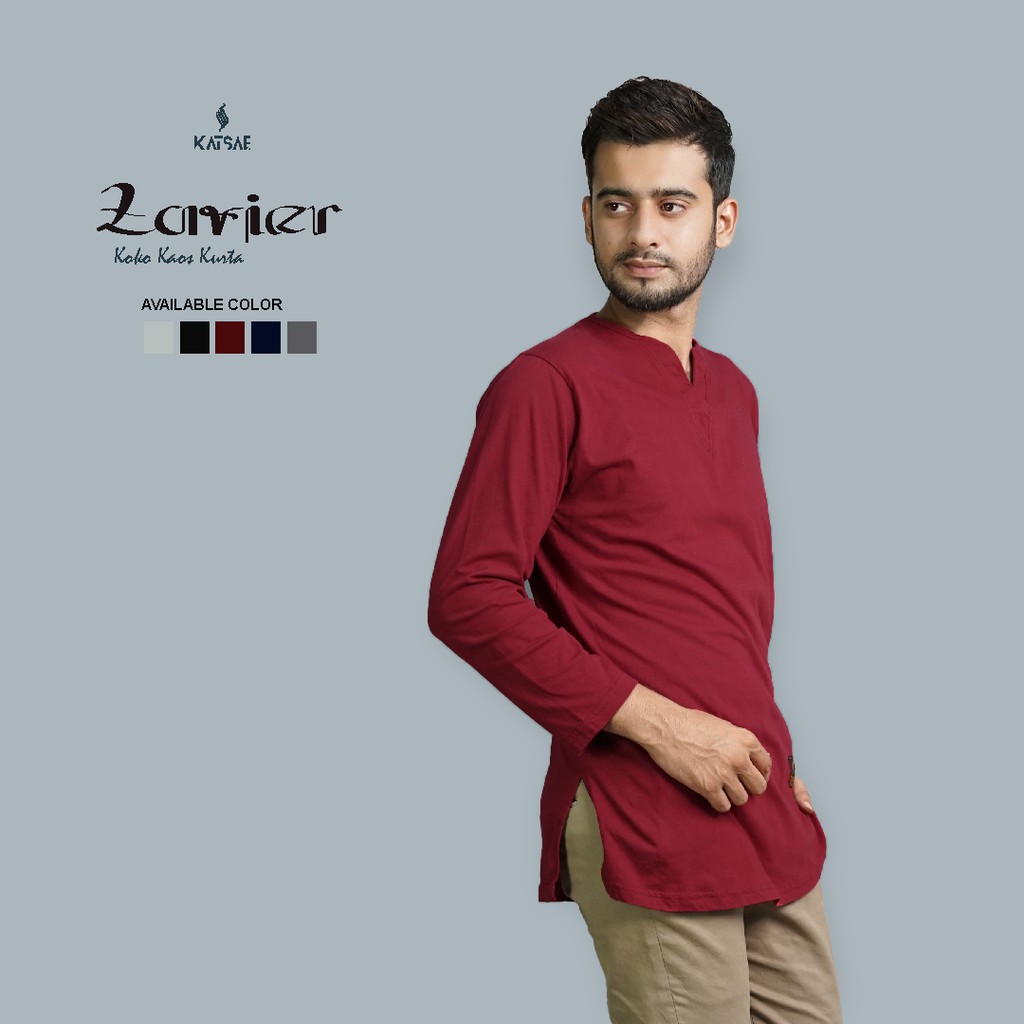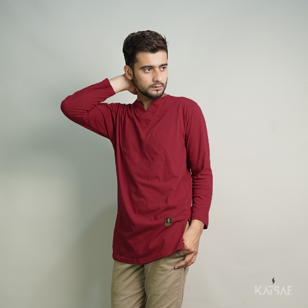 Baju Koko Kaos Kurta Pakistan Zavir Lengan Panjang Warna Maroon