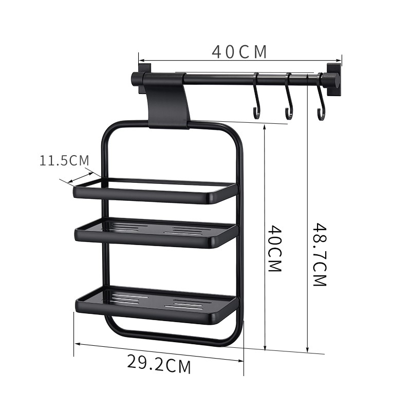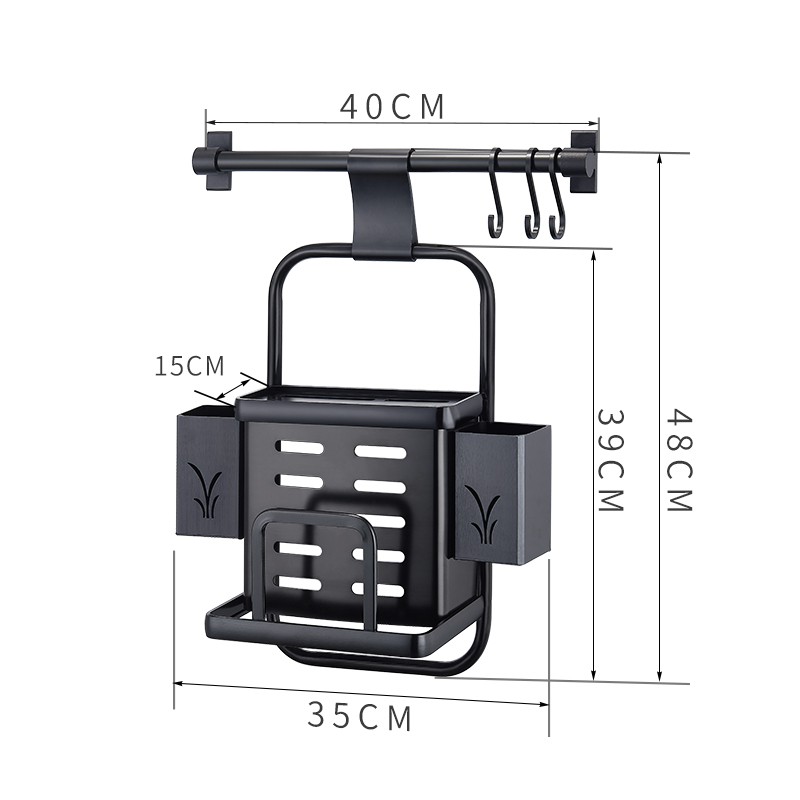 Setiap rak dilengkapi dengan batang gantung dan tiga kait. Panjang batang gantungan adalah 40cm.