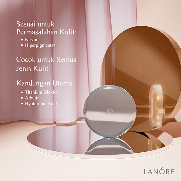 Lanore Brightening Powder Foundation SPF 10+ PA++ sangat cocok untuk wanita Asia yang aktif dan dinamis. Alas bedak dengan kandungan Arbutin yang membantu mencerahkan dan menyamarkan noda hitam pada kulit wajah. Kandungan UVA dan UVB filter melindungi kulit wajah dari pengaruh buruk paparan sinar matahari.