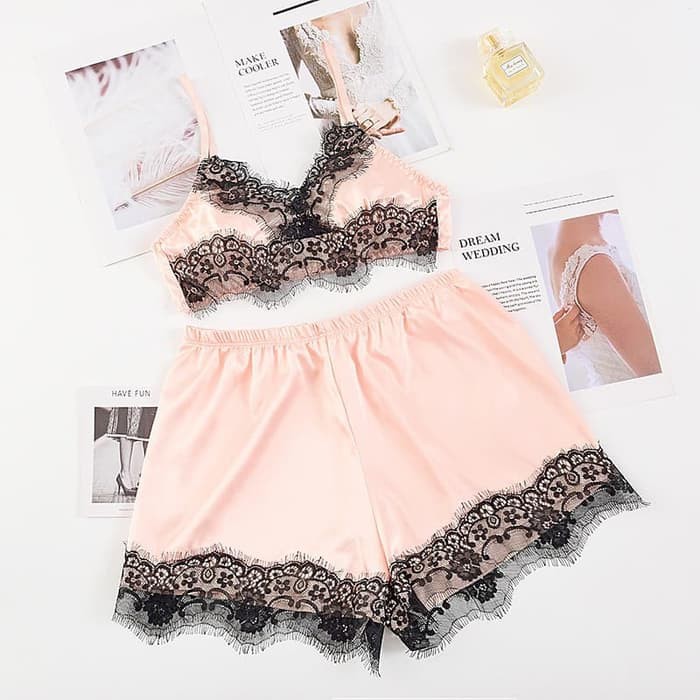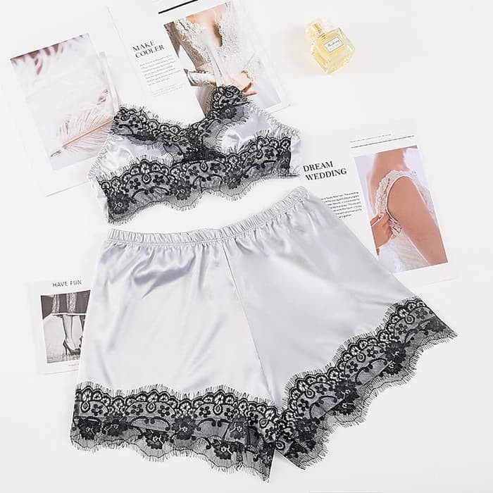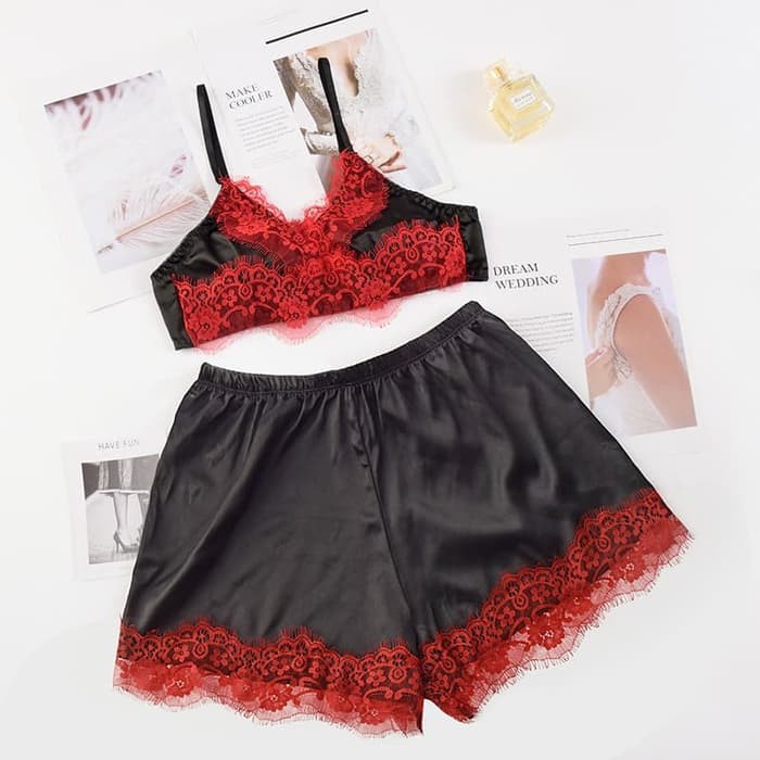 Lingerie Lingery MAHAL bahan PREMIUM Sutera Baju Tidur Piyama Sexy Set ( Bonus Pad / Bantalan Bra )